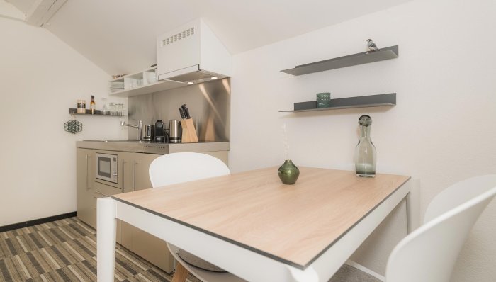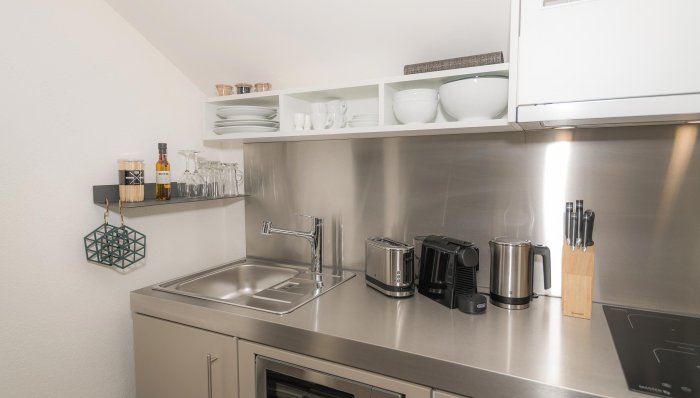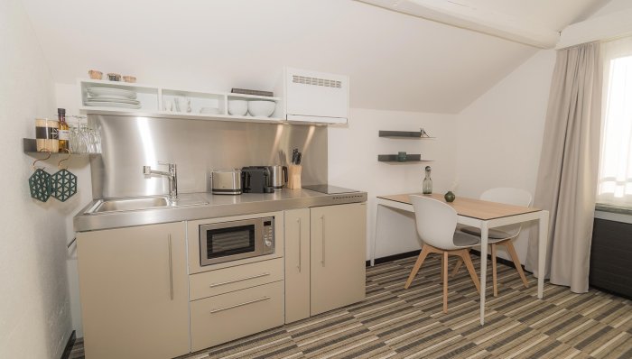 Gemeinschaftsküche mit eig. Kühlsch. und Vorratskasten für Zi. o/eig. Küche